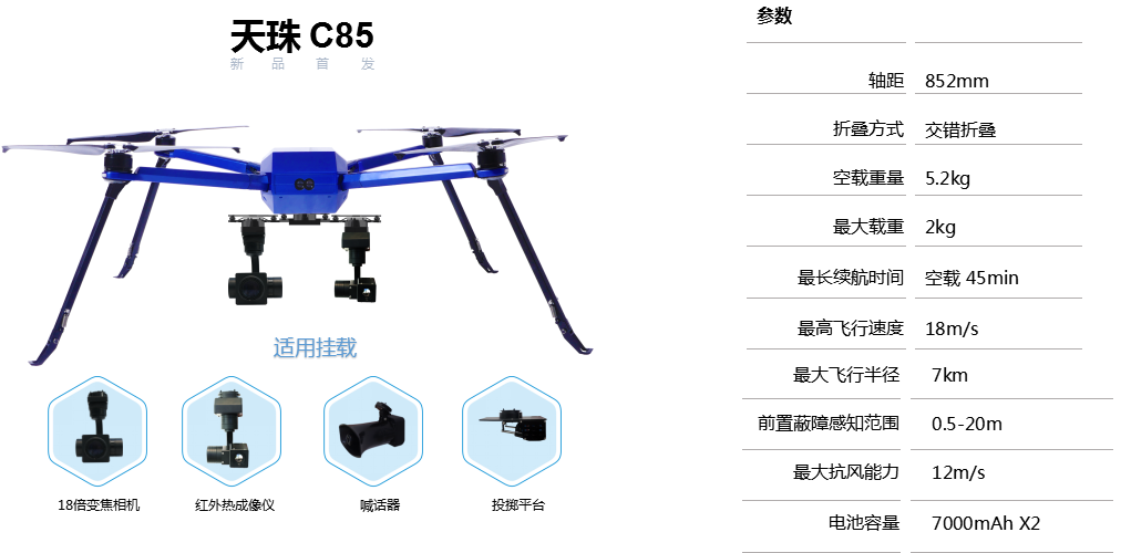 適用于武警的無人機(jī)產(chǎn)品-天珠C85