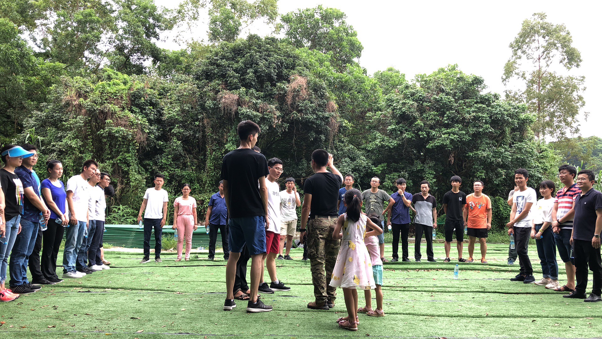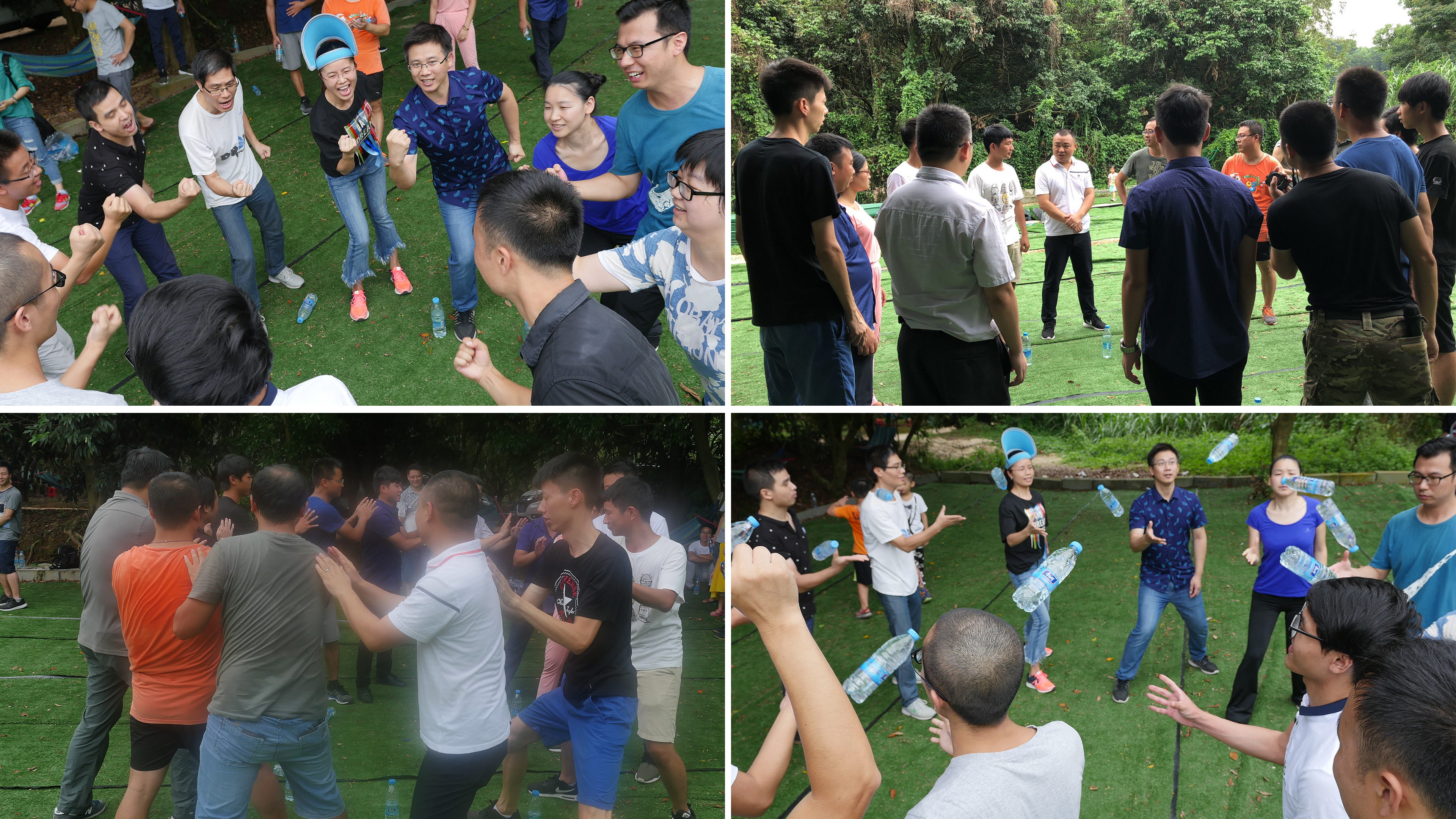 本次團建活動主要由拓展游戲、野炊和生日會三個環節組成。在拓展游戲中,全體員工被分成三個隊,各自取名叫作:天珠隊、雄鷹隊、戰狼隊,每個隊都分別有自己的隊長、口號及隊歌。在教練的帶領下開始互相比賽、互相競爭。