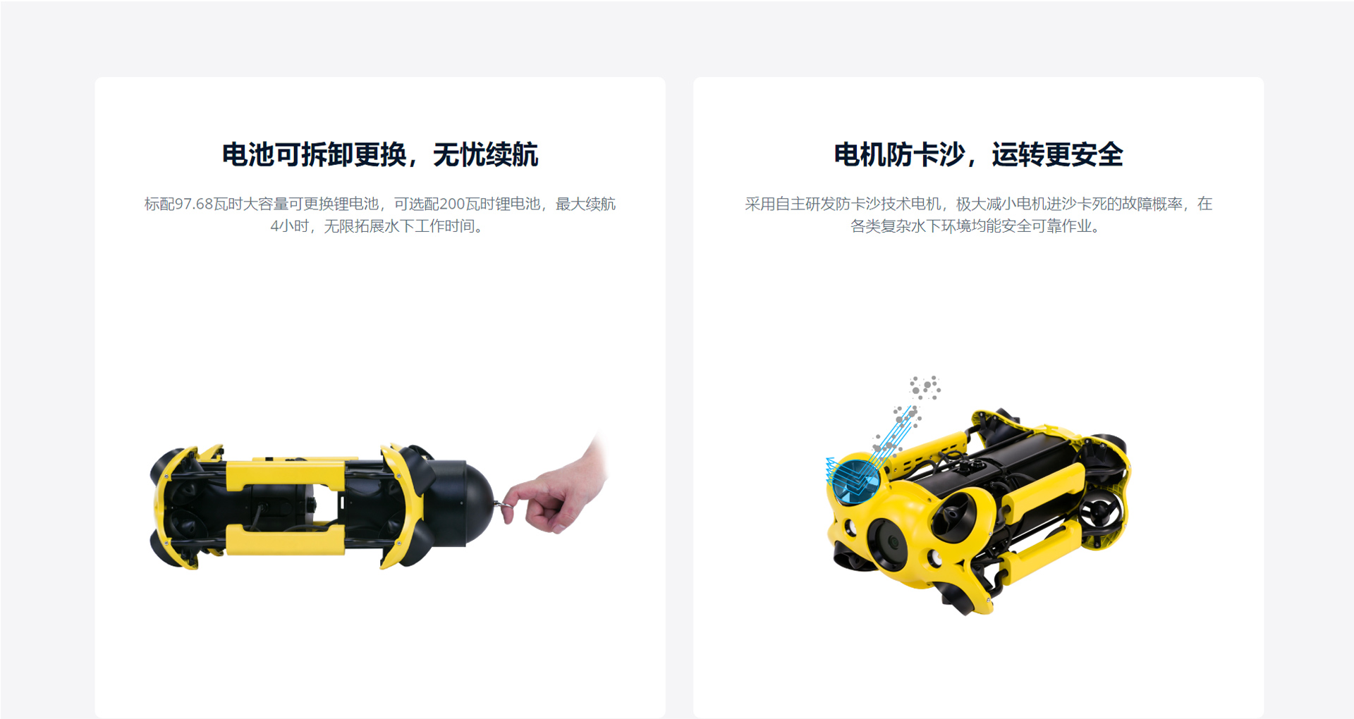 · 最大航速3節,最大下潛100米,最大水平半徑200米