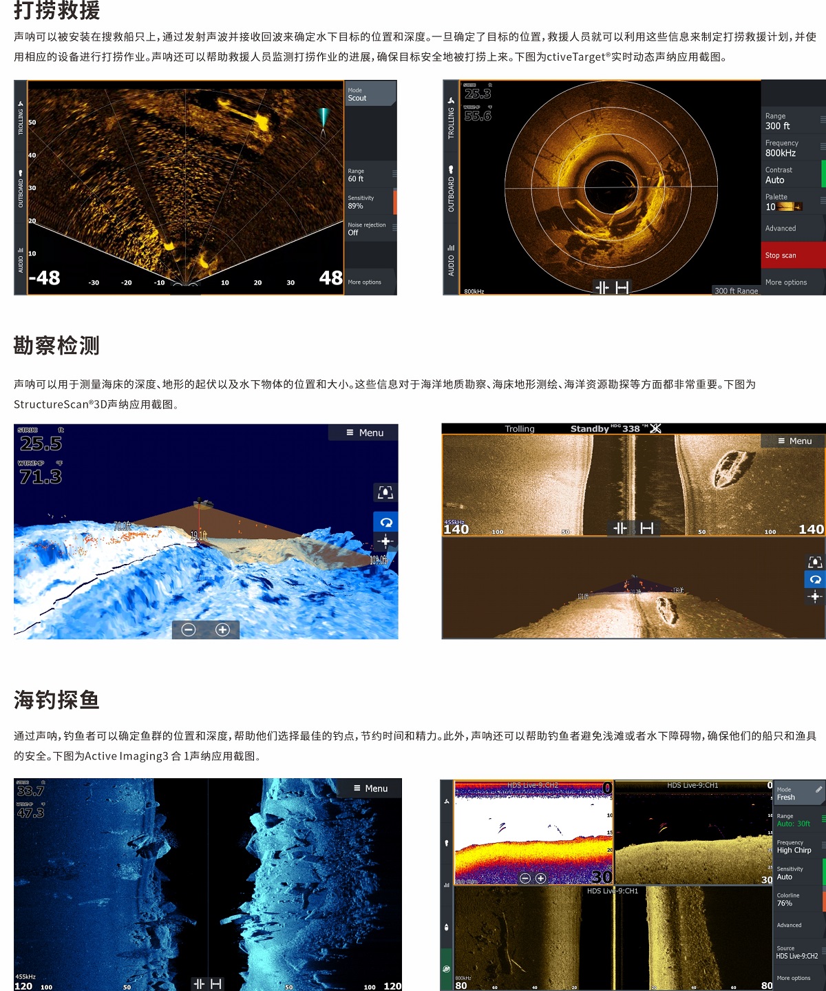 聲吶利用聲波探測水下環境,在多個領域發揮關鍵作用。在救援領域,它可快速定位沉船與溺水者,提升搜救效率與成功率。海洋勘探中,聲吶繪制海底地形、探測資源,助力科學研究與油氣開發。釣魚時,聲吶識別魚群位置與水深,大幅提高漁獲效率。考古方面,它用于發現水下遺址、沉船及文物,非接觸式探測保護遺跡完整性。聲吶技術拓展了人類水下感知能力,在安全、資源、休閑與歷史研究方面具有不可替代的價值。