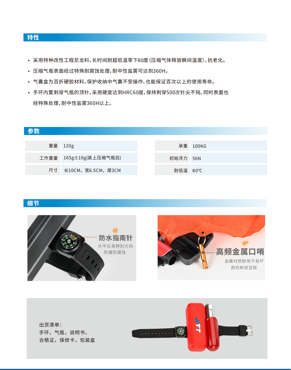 特點:承受100-180KG浮力+替換式CO2氣瓶+帶指南針